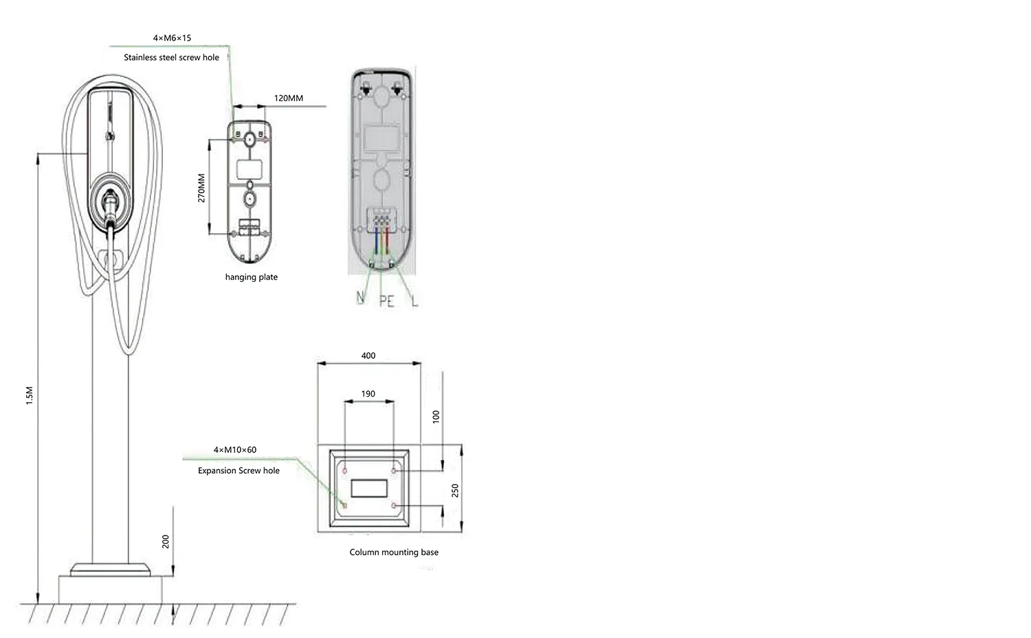 - Zariadenie striktne dodržiava princípy modulárneho dizajnu: komunikačný modul je plug-and-play, kompatibilný s modulmi Ethernet/GPRS/3G/4G, čo umožňuje užívateľom vybrať si podľa skutočných potrieb; konštrukcia je kompatibilná s nástennou aj stojacou inštaláciou. Nástennú nabíjaciu hromadu je možné premeniť na stojacu inštaláciu pridaním tyče bez toho, aby sa zmenila jej štruktúra alebo pridalo sa ďalšie príslušenstvo.