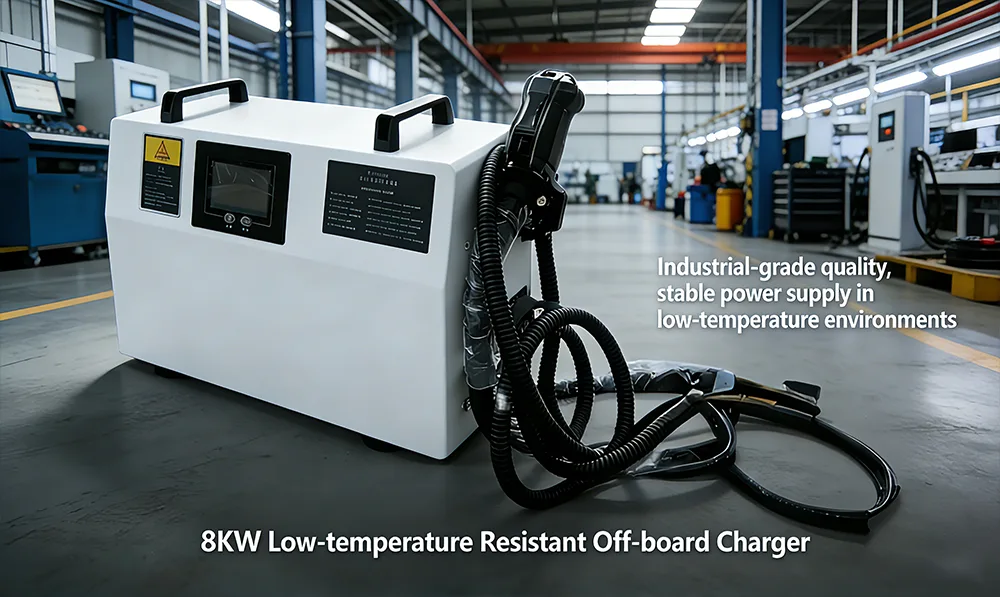 Táto externá nabíjačka odolná voči nízkej teplote s výkonom 8 kW využíva čipy prispôsobené nízkej teplote a účinnú tepelnú izoláciu a štruktúru odvádzania tepla. Môže stabilne fungovať v širokom rozsahu teplôt od -40 ℃ do 50 ℃ v scenároch, ako sú vonkajšie sklady v severných zimách a prístavy v chladných oblastiach, so 100 % úspešnosťou spustenia.